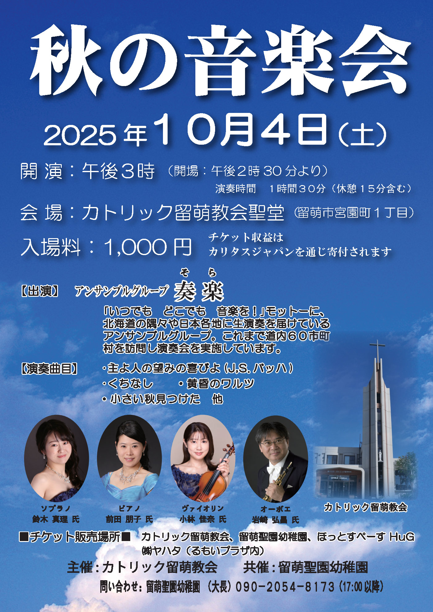 ♪秋の音楽会(10/4 15:00~ カトリック留萌教会)