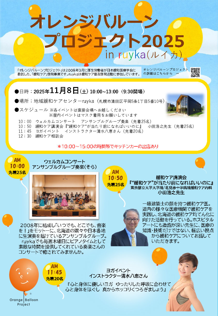 【11/8(土)10:00~、札幌市清田区・地域緩和ケアセンターruyka】